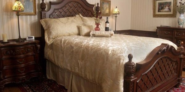 Fantastic Queen size bed, this room features a large bathroom with combination shower/tub. The bathroom and bedroom are separated by a beautiful stained glass window with a dimmer light behind it perfect for setting a nice ambiance to the room. As in all of our rooms there is a microwave, refrigerator, cable television and high speed internet service.